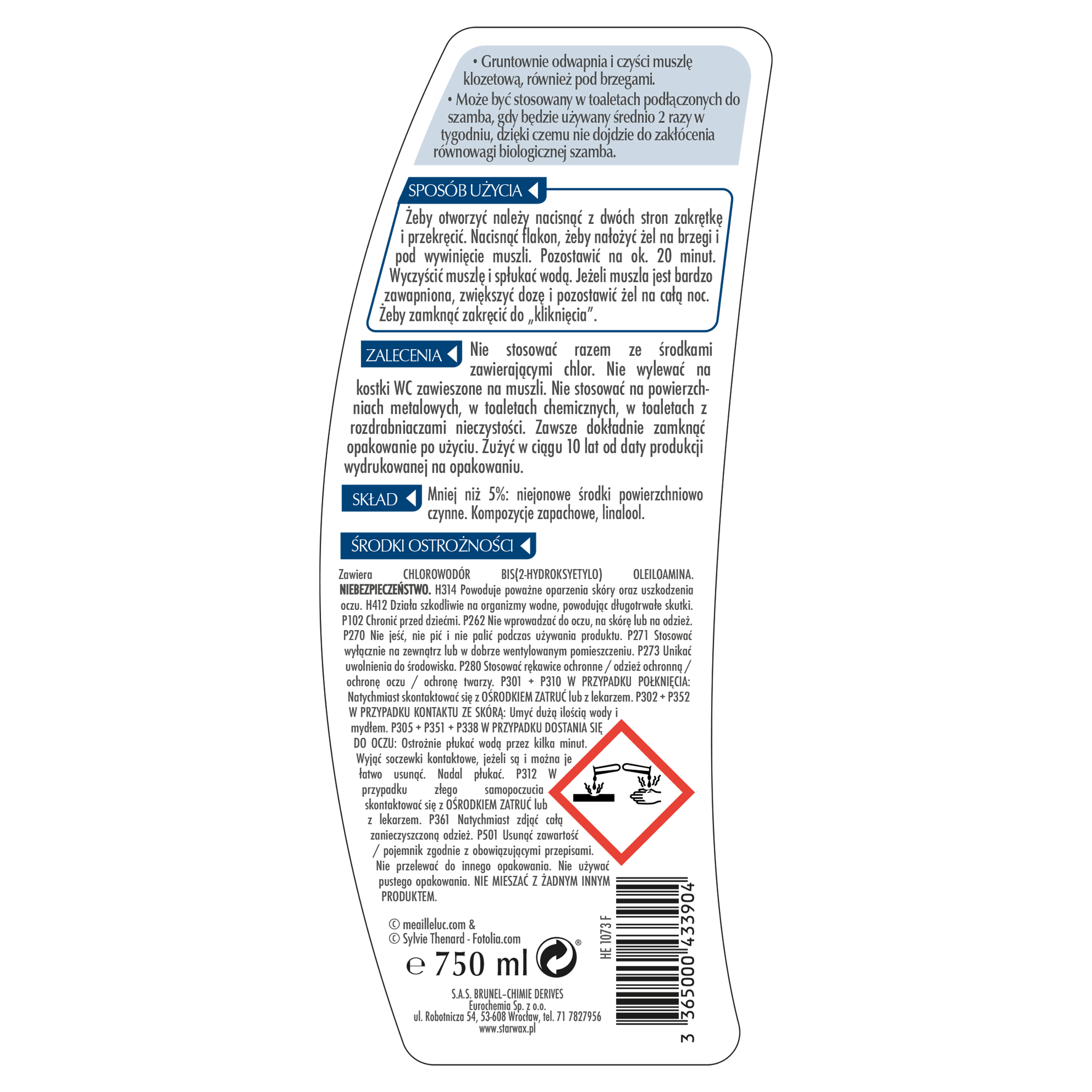 Silnie skoncentrowany, kwaśny żel do czyszczenia muszli i odpływów WC. Usuwa osad wapienny i rdzawe zacieki.