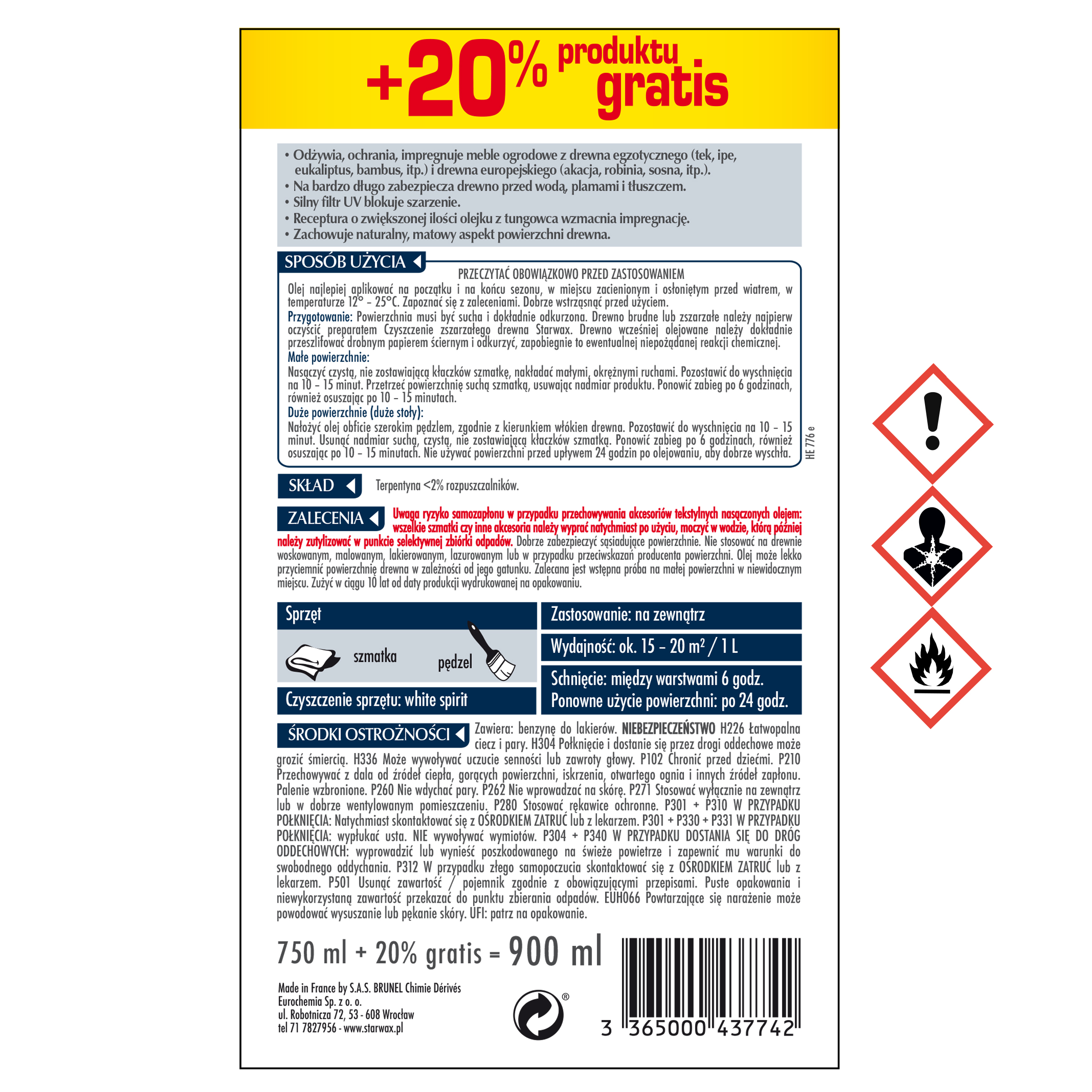 - >Specjalny olej Meble Ogrodowe 750 ml + 20% gratis Starwax