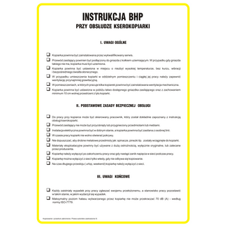 Oznaczenie "Instrukcja BHP przy obsłudze kserokopiarki" 24,5 x 35