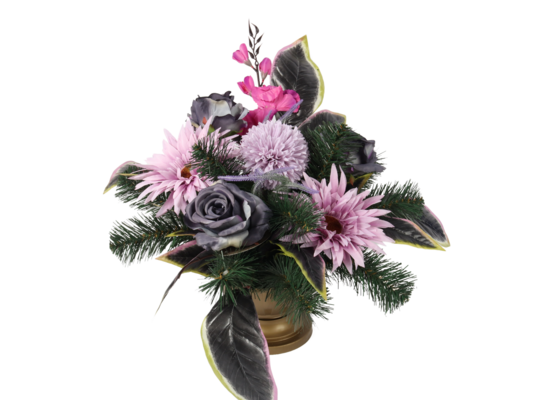 - Stroik dekorowany w misie margaretki, gladiole, czosnek, róże