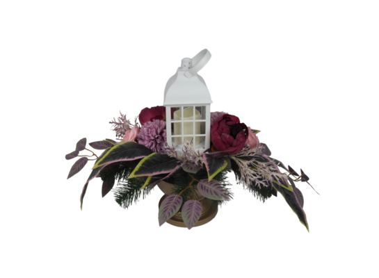 Stroik dekorowany z latarnią LED róże, czosnek, piwonie