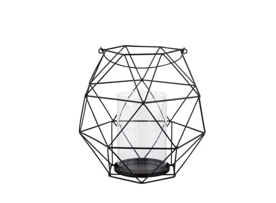 Świecznik metalowy geometryczny z uchwytem i szklanym wkładem 22 x 22 x 22 cm czarny