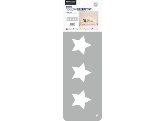 Wysokiej jakości, trwały, elastyczny, plastikowy szablon dekoracyjny przeznaczony do wielokrotnego użycia. Doskonale nadaje się do dekoracji wykonywanych na ścianach, meblach, na papierze, drewnie, tkaninie, szkle, ceramice oraz jako dodatek do techniki decoupage. Do wykonywania dekoracji zaleca się stosowanie farb do szablonów z serii Primacol® decorative, w wygodnych w użyciu tubkach z gąbkowym aplikatorem.