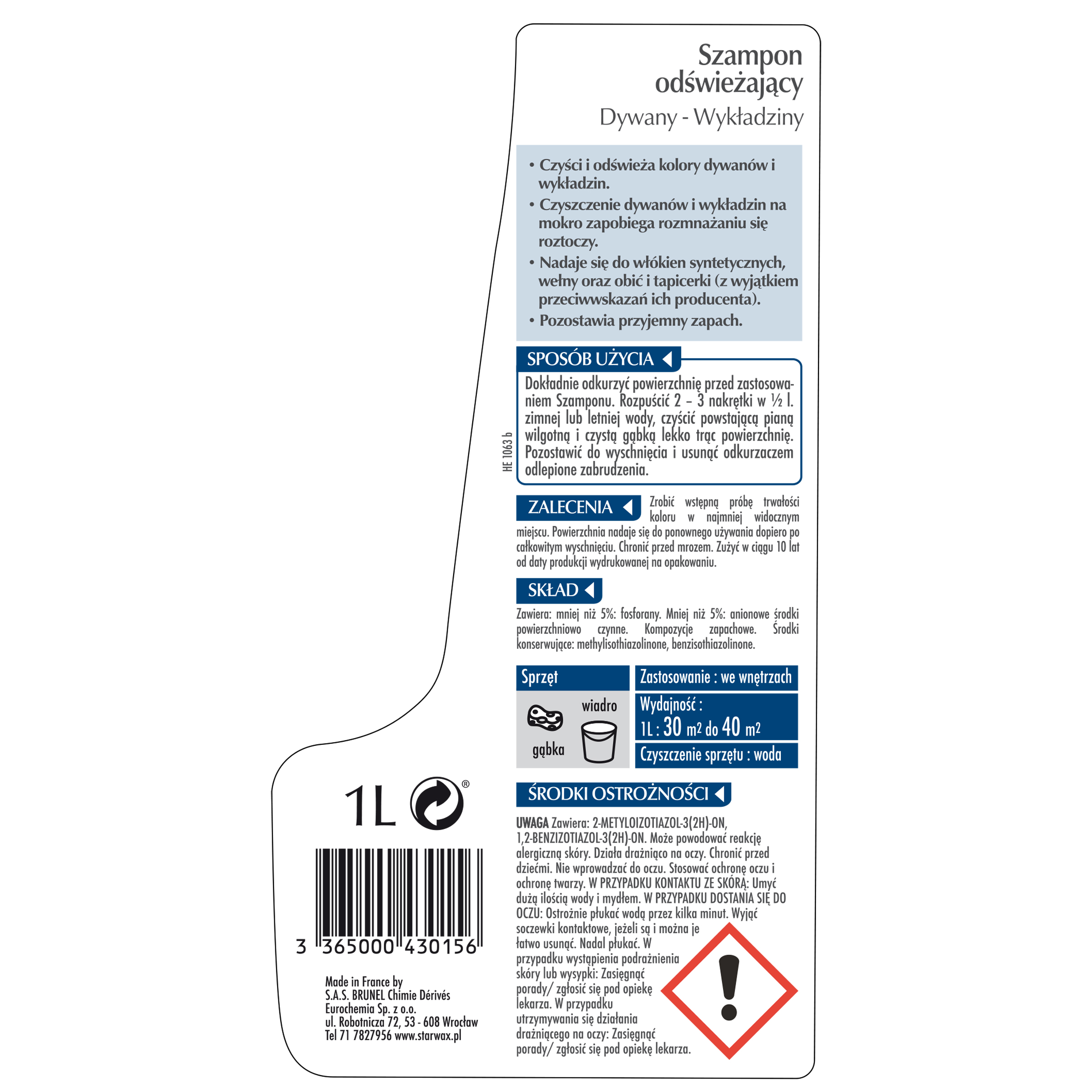 Szampon odświeżający Dywany&Wykładziny 1 l Starwax