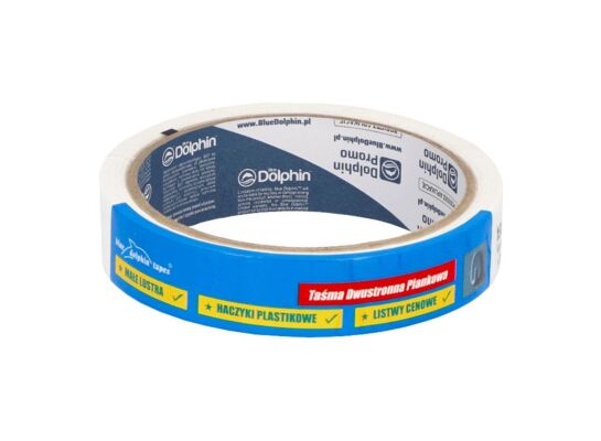 Taśma dwustronna piankowa na bazie pianki polietylenowej przeznaczona do trwałych połączeń elementów wykonanych z różnych materiałów, montażu luster, elementów motoryzacyjnych, listew ozdobnych itp. Taśma o grubości 1 mm.