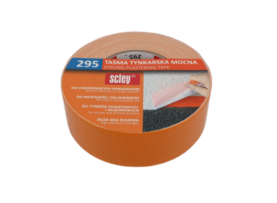 Taśma tynkarska mocna Scley *295* jest przeznaczona do prac tynkarsko-murarskich takich jak gipsowanie, tynkowanie i malowanie. Służy do zabezpieczania fragmentów murów, fasad, wnęk okiennych i drzwiowych. Może być stosowana na takich powierzchniach jak tynk, kamień, beton, cegła, zarówno wewnątrz pomieszczeń jak i na zewnątrz.