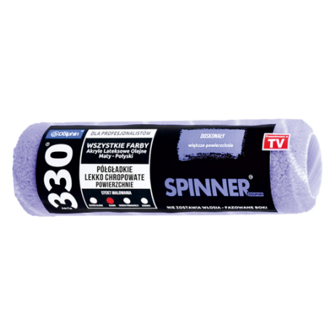 Wałek SPINNER S18W13 Seria 330 Blue Dolphin ma szerokość 7 cm i długość 17,8 cm, co pozwala na szybkie i sprawne malowanie dużych powierzchni. Puszyste włosie wkładu dobrze sprawdza się przy malowaniu półgładkich i lekko chropowatych powierzchni, a poliestrowe pokrycie znacznie ułatwia czyszczenie wałka po skończonej pracy. Za pomocą tego produktu możesz malować przy użyciu dowolnego rodzaju farby.
