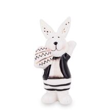 Figurka z dolomitu królik z pisanką 8,5 x 6,5 cm czarno-biała