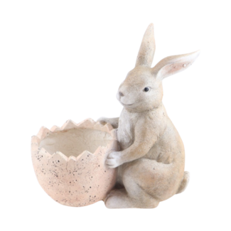 Figurka ceramiczna zając z jajkiem 15,5 cm biała