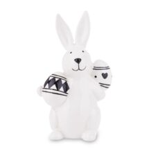 Figurka ozdobna zając z pisankami 14,5 x 8,5 x 6 cm biało-czarny