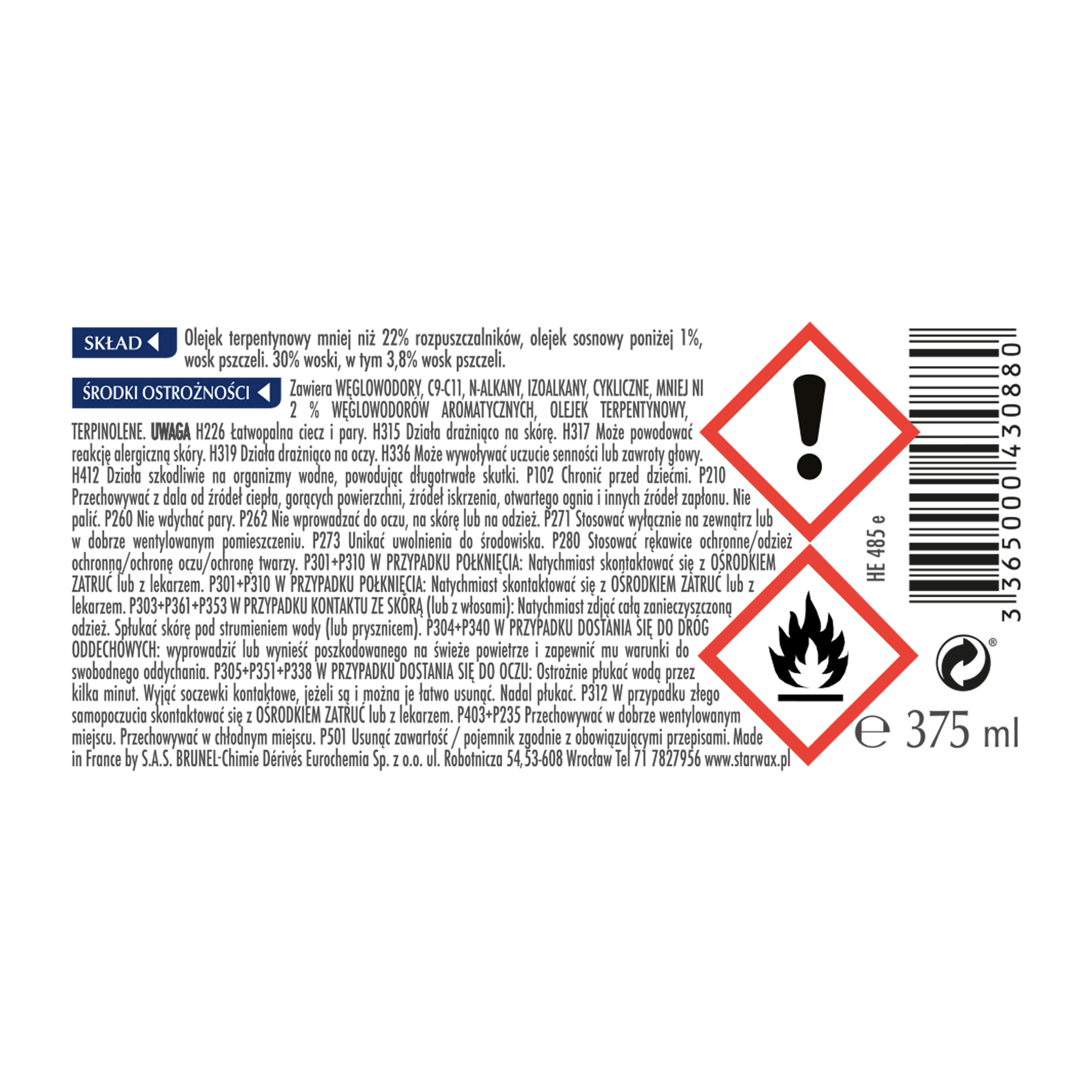 - >Wosk pasta jasny dąb 375 ml Starwax