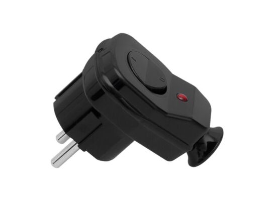 - Wtyczka kątowa z uziemieniem, wyłącznikiem, podświetlana, czarna