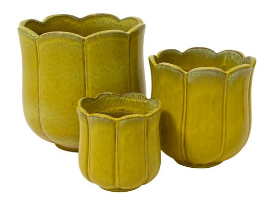 Zestaw 3 osłonek z terakoty tulipan śr. 42 cm żółty