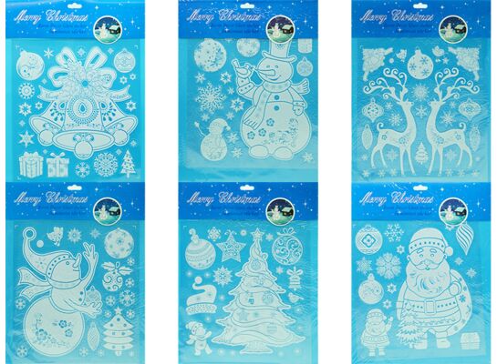 Zestaw naklejek świątecznych na szybę 33 cm mix wzorów