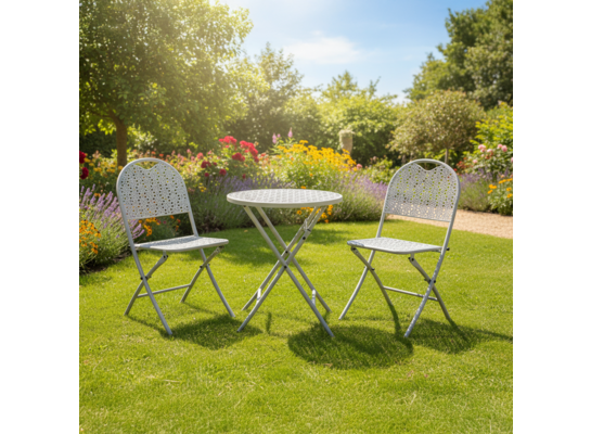 - >Zestaw składany balkonowy stolik + 2 krzesła ażurowe