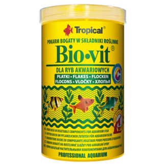 BIO-VIT roślinny pokarm w formie płatków. Płatki BIO-VIT to roślinny pokarm do codziennego karmienia ryb roślinożernych oraz uzupełniający pokarm dla ryb wszystkożernych. Niezastąpiony w akwariach ogólnych z wielogatunkową obsadą ryb. Optymalnie zbilansowany skład oraz dodatek niezbędnych dla ryb witamin i mikroelementów, w tym pochodzących z zarodków pszennych, zapewniają prawidłowy wzrost i rozwój. Na uwagę zasługuje znaczna zawartość stabilizowanej witaminy C, która między innymi wzmacnia odp